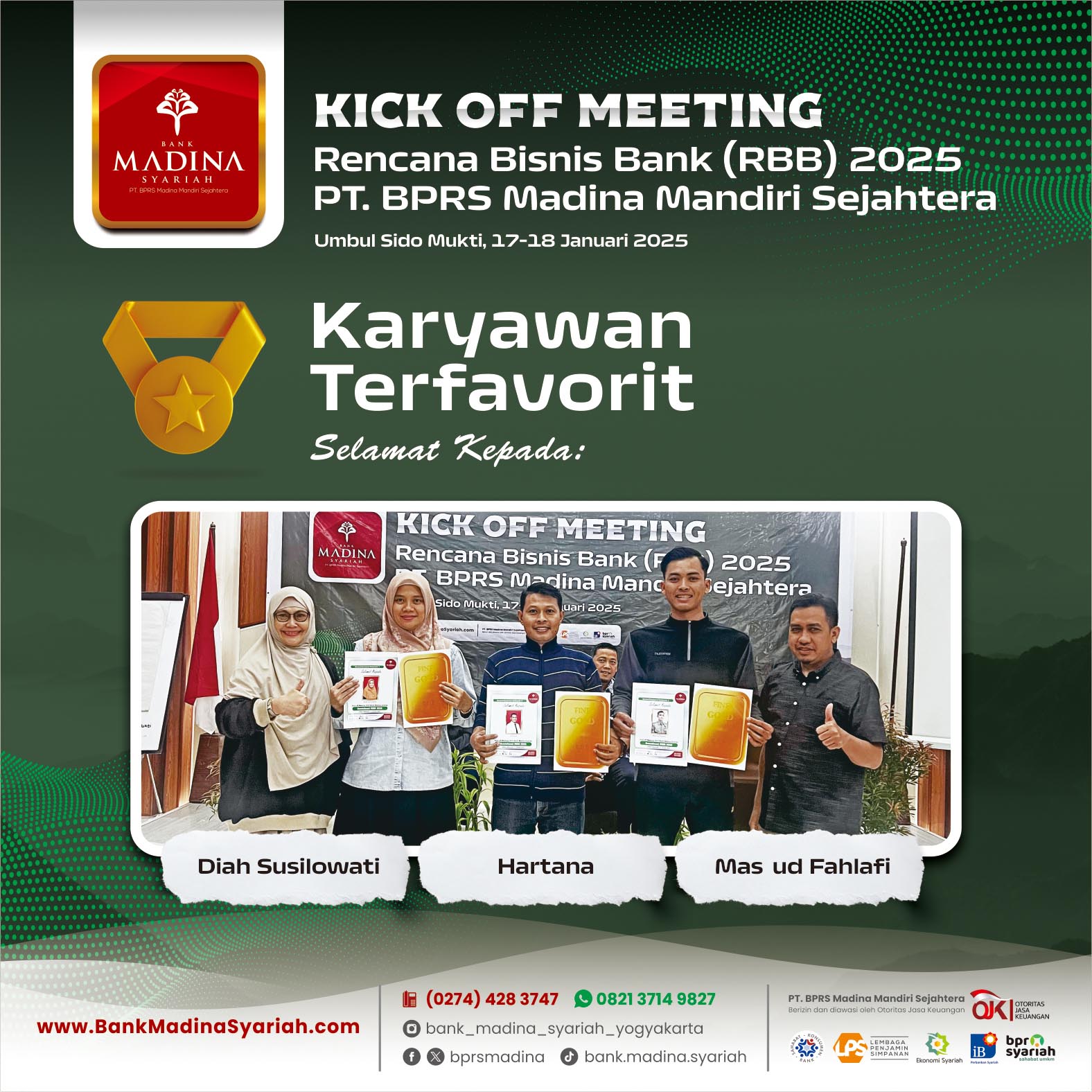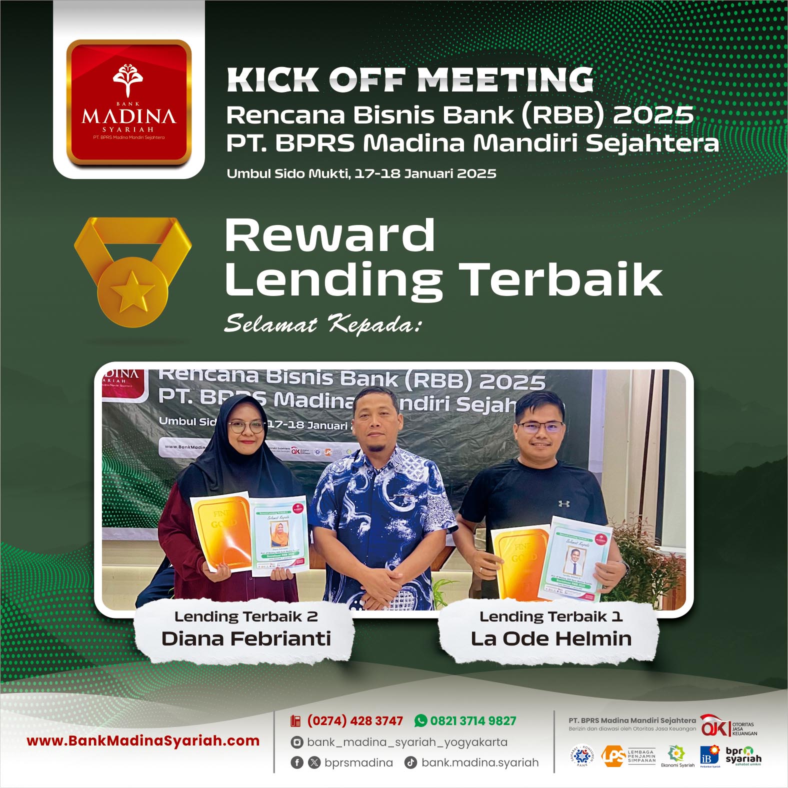 PT. BPRS Madina Mandiri Sejahtera Berizin & diawasi oleh OJK, serta merupakan Peserta Penjaminan LPS