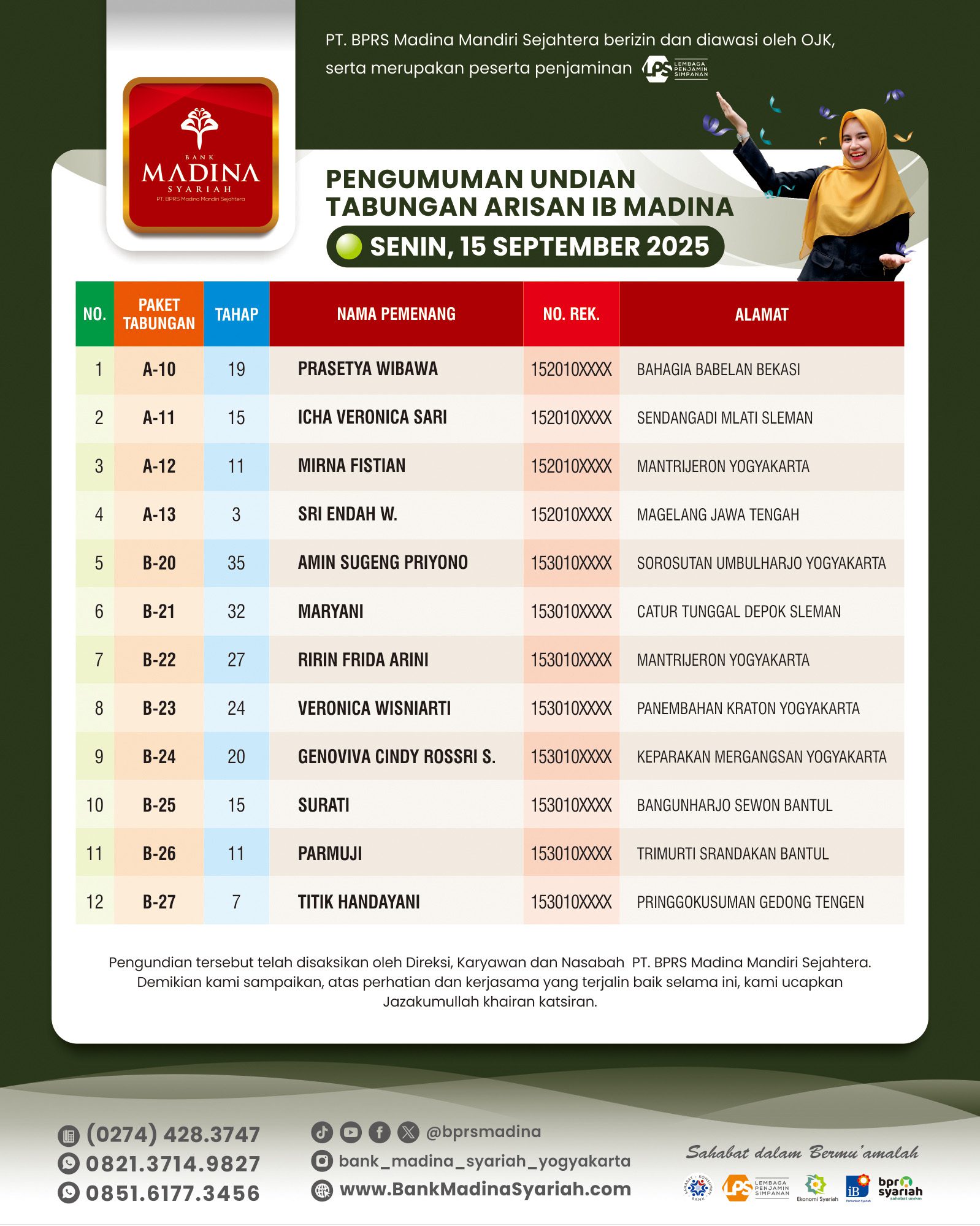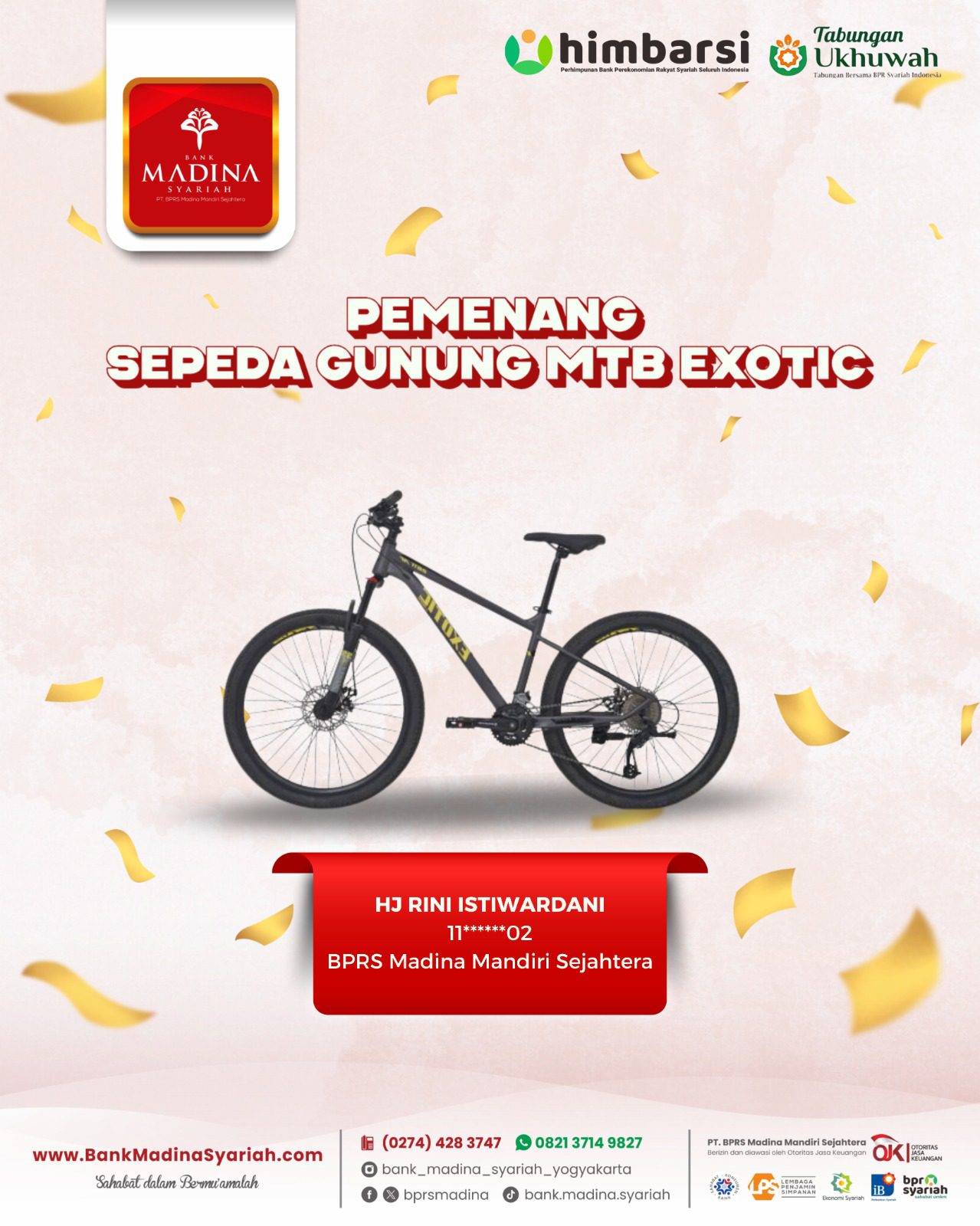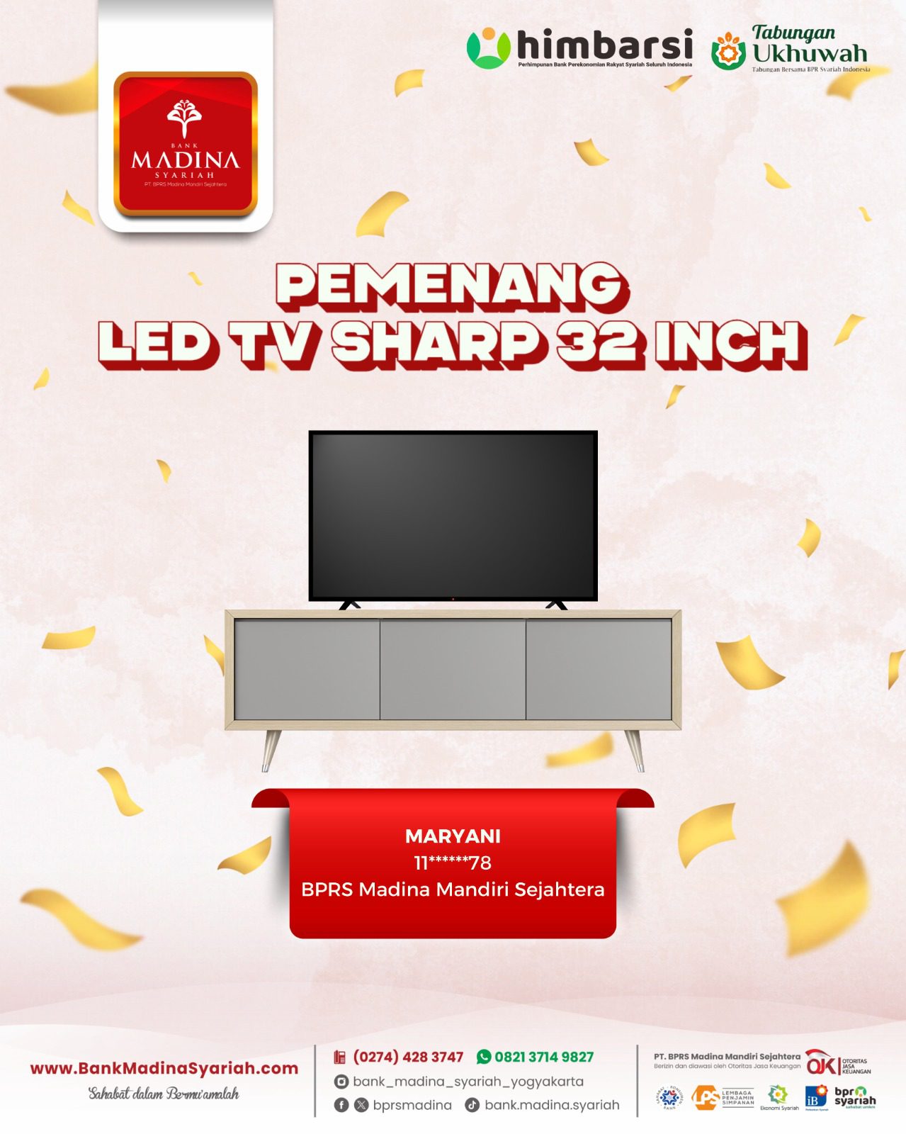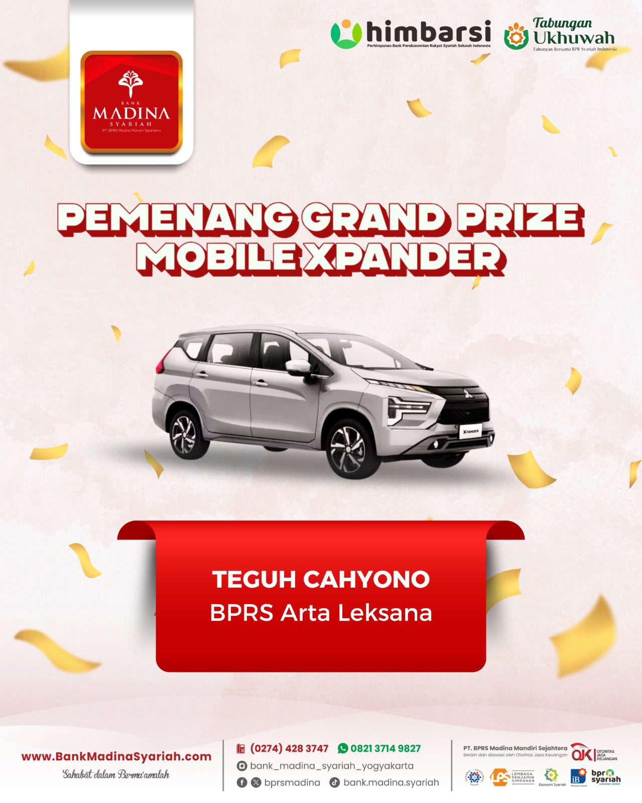 Alhamdulillah BPRS Madina menjadi juara 1 nasional kategori BPRS dengan aset di atas 100 M untuk kategori “Engagement UMKM”. Terima kasih untuk dedikasi dan kontribusi teman-teman semua. InsyaAllah semakin menambah semangat kita semua untuk bahu membahu menjadikan BPRS Madina semakin besar berkembang dan bermanfaat untuk umat dan kita semua. Aamiin.