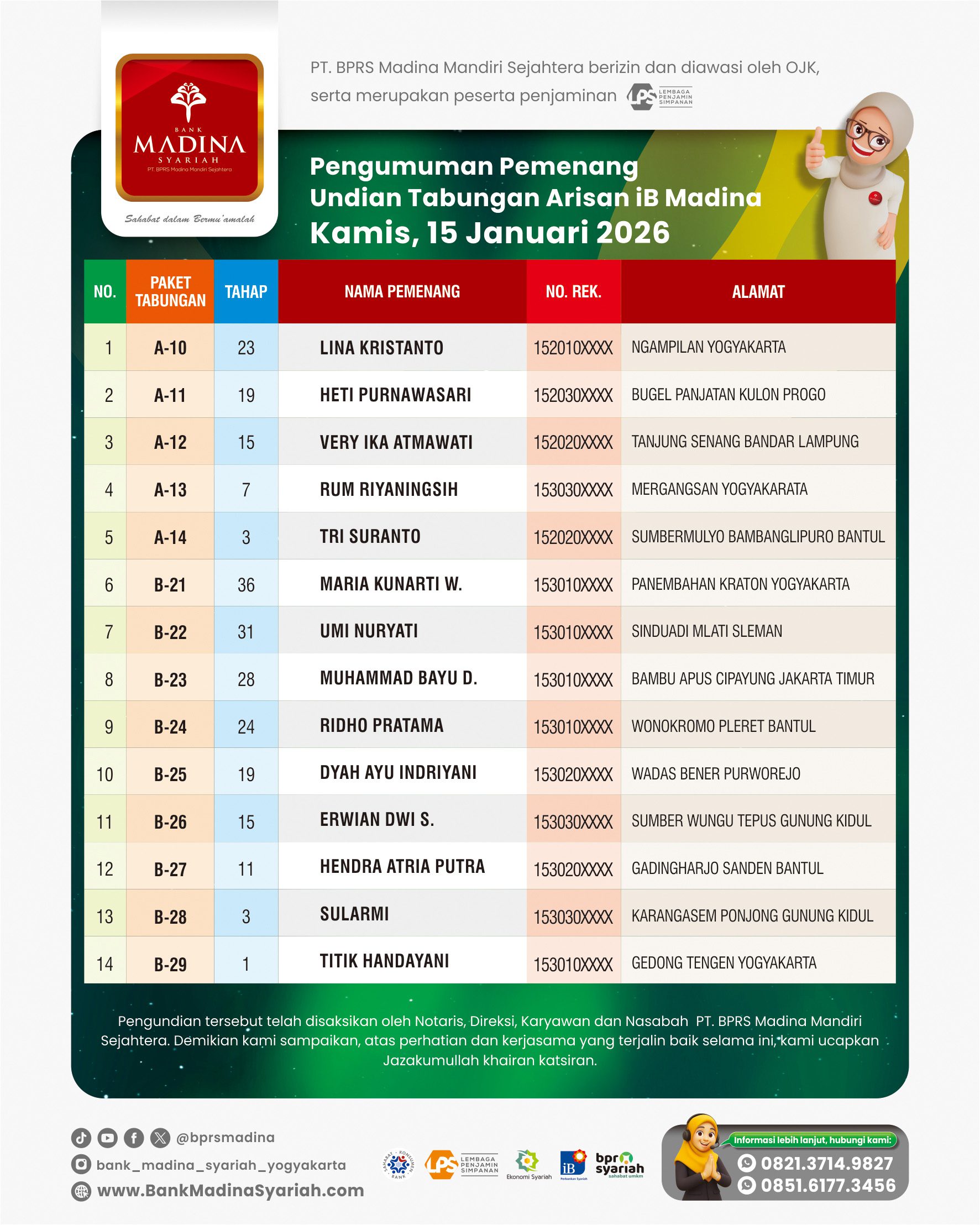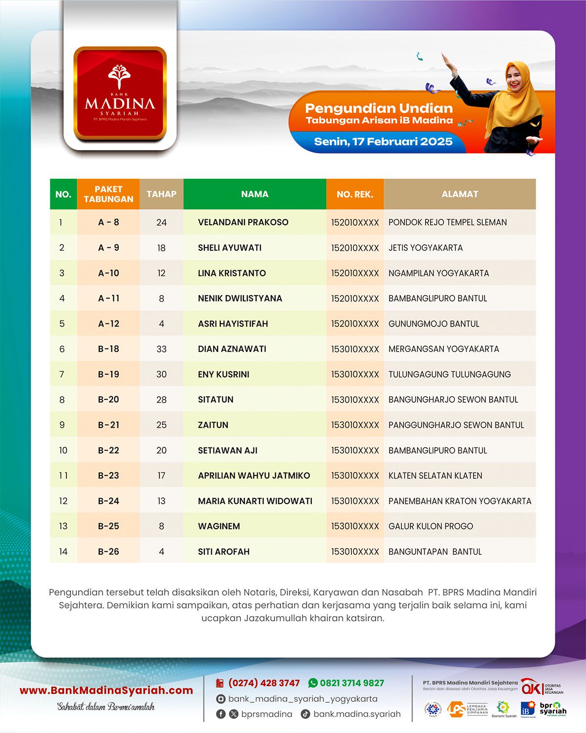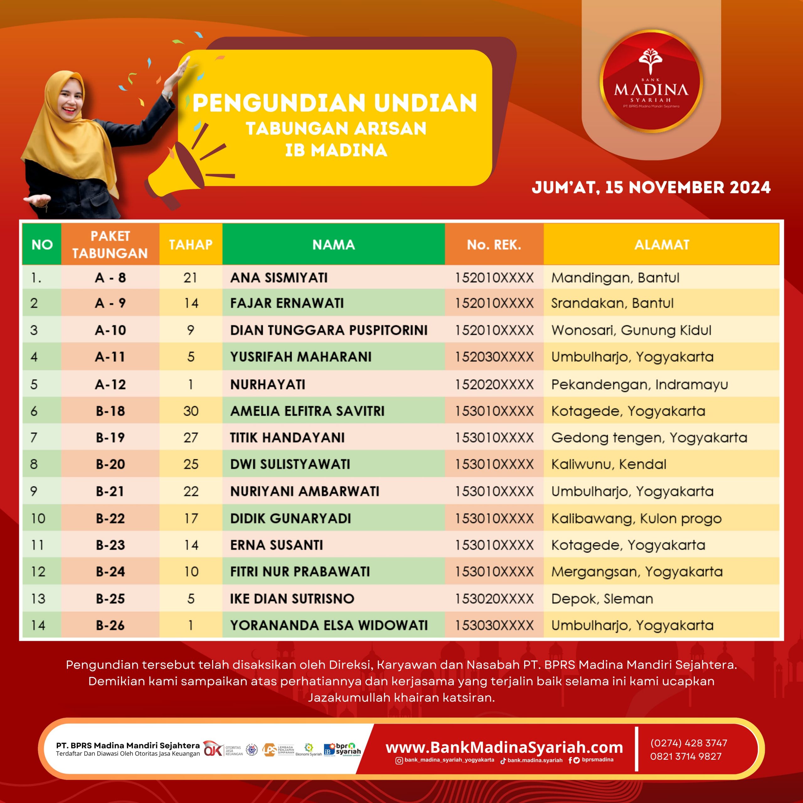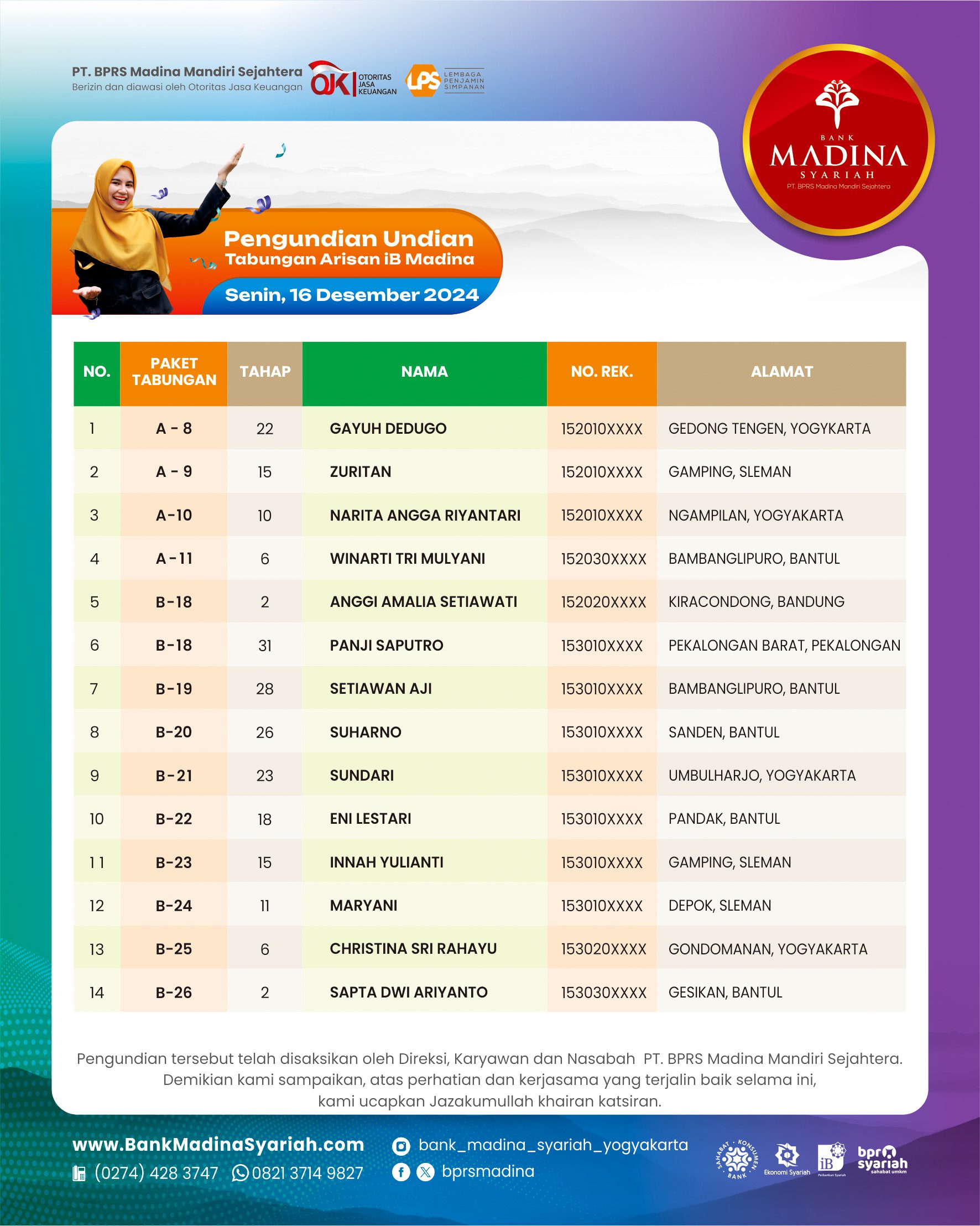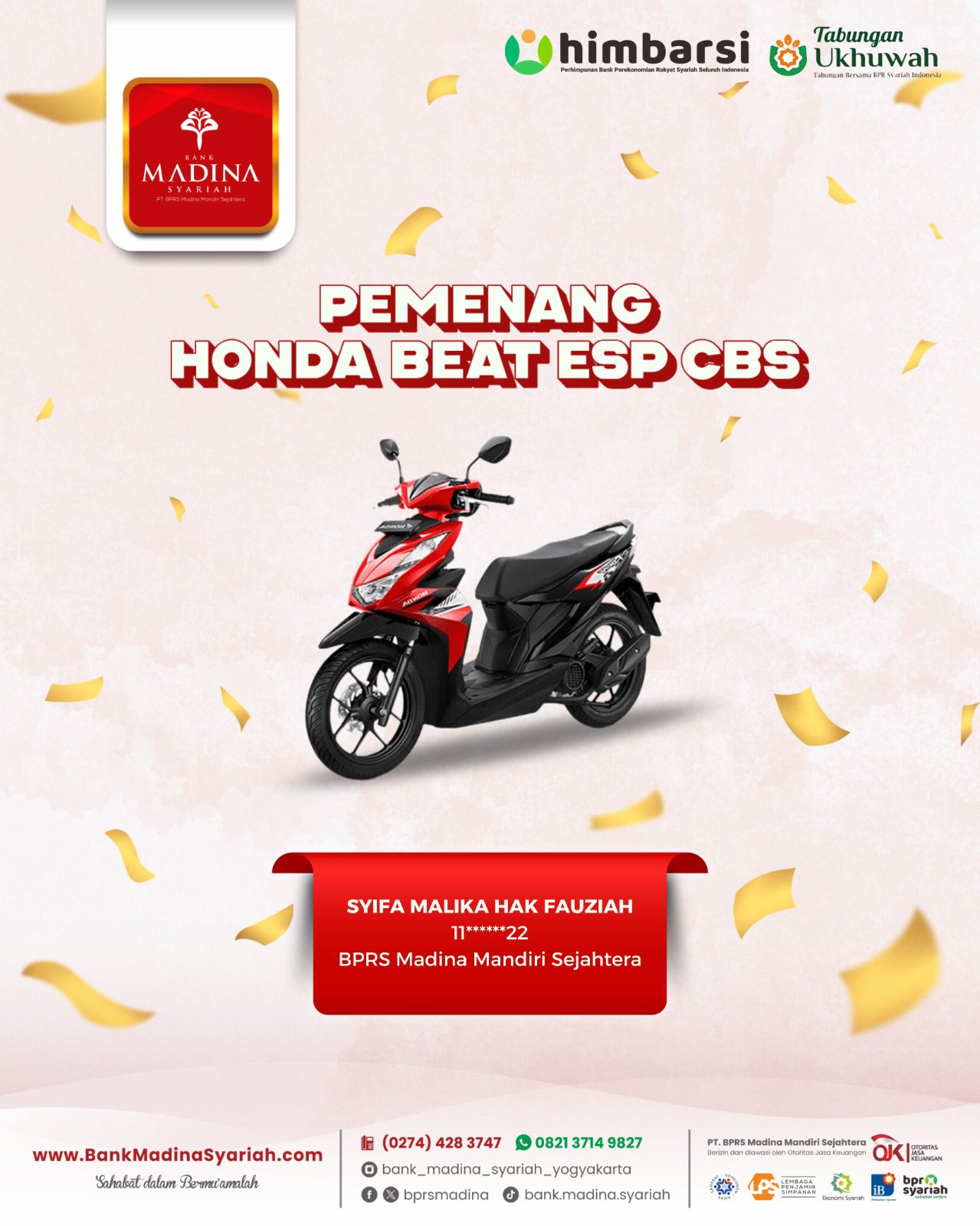 Besar harapan kami Bank Madina Syariah bisa terus sukses dan berkembang menjadi BPRS terdepan dalam membangun ekonomi umat serta selalu bisa hadir menjadi Sahabat dalam Bermu’amalah.