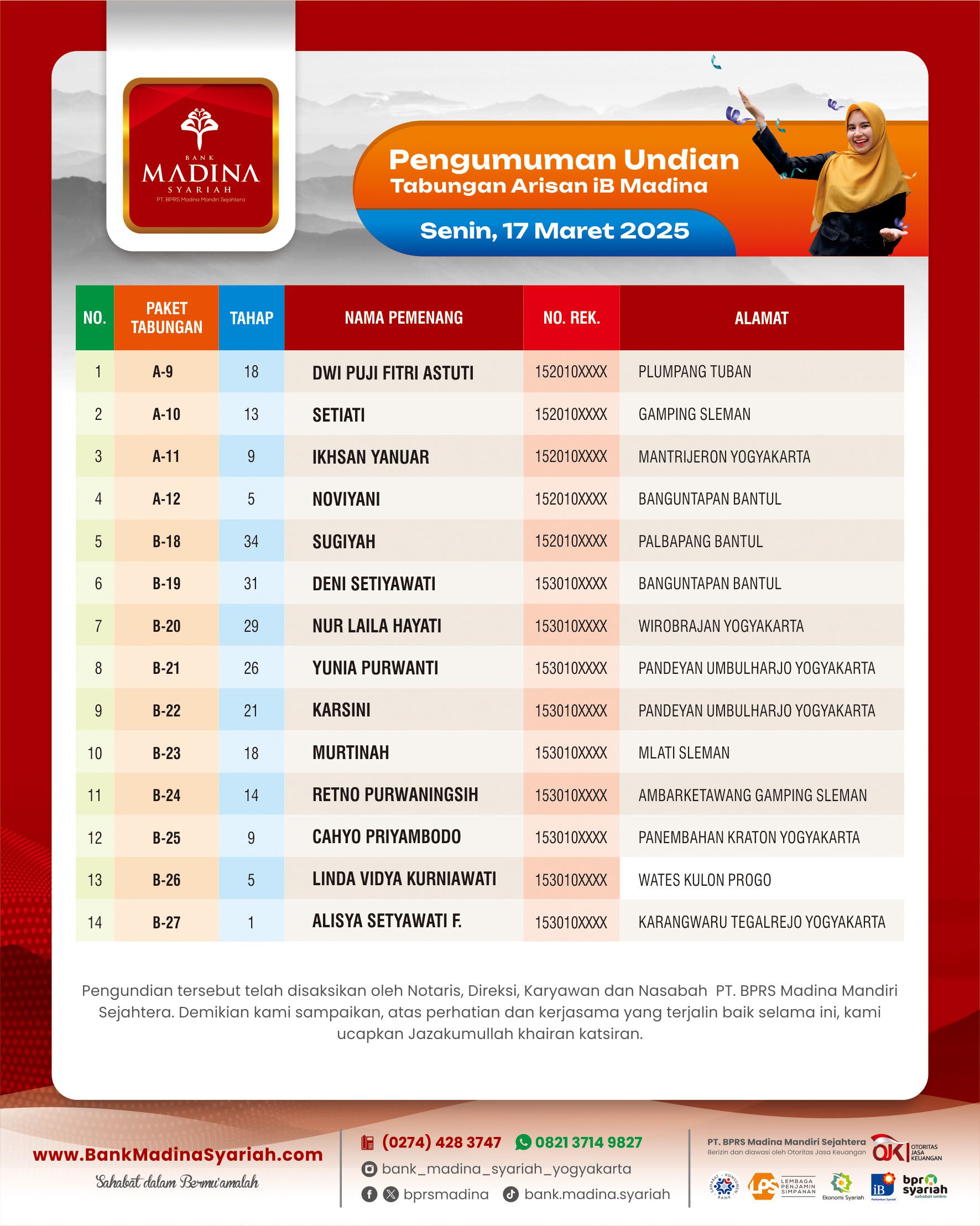 Menjelang usia yang ke 17 tahun Alhamdulillah Bank Madina Syariah menerima penghargaan dari: