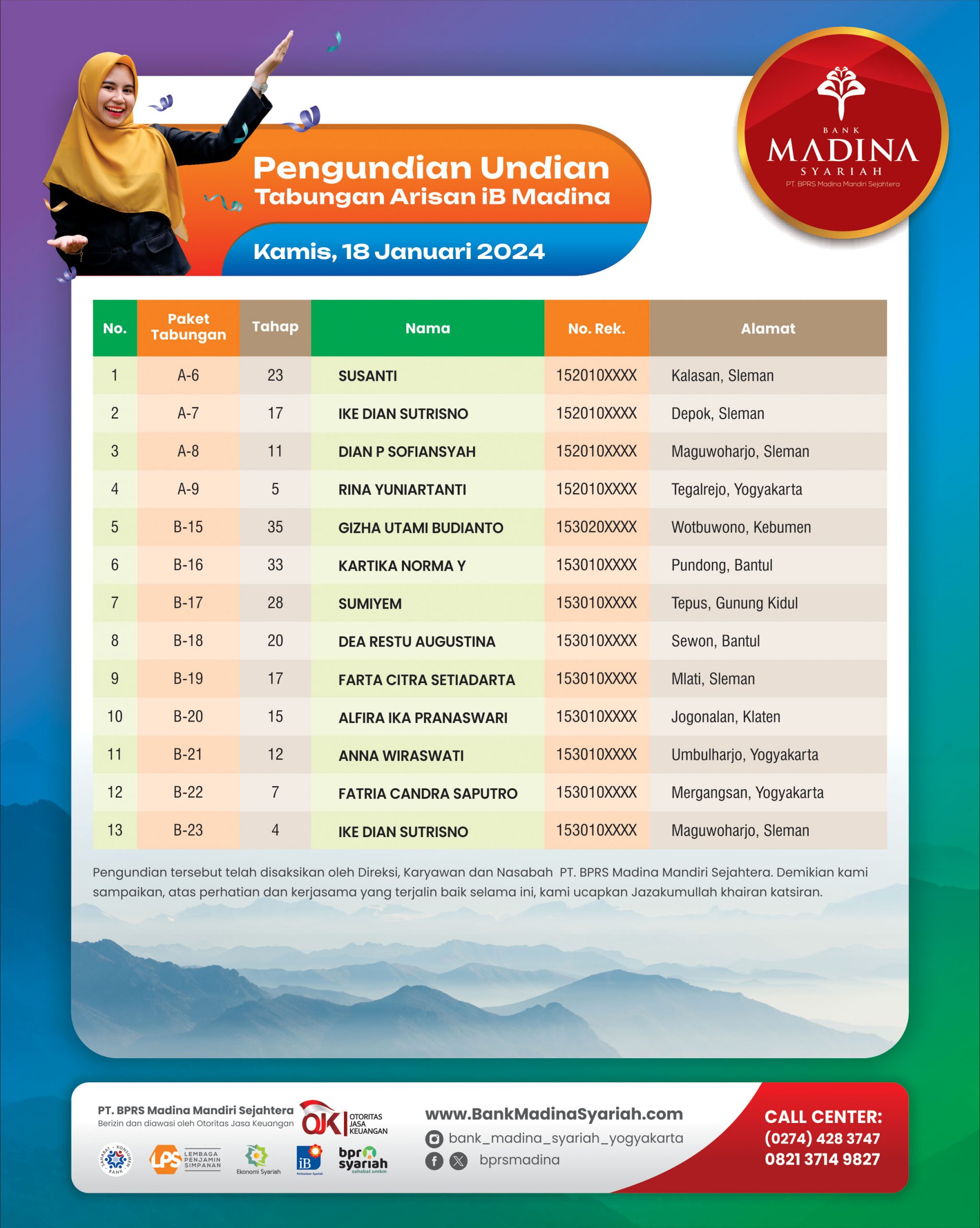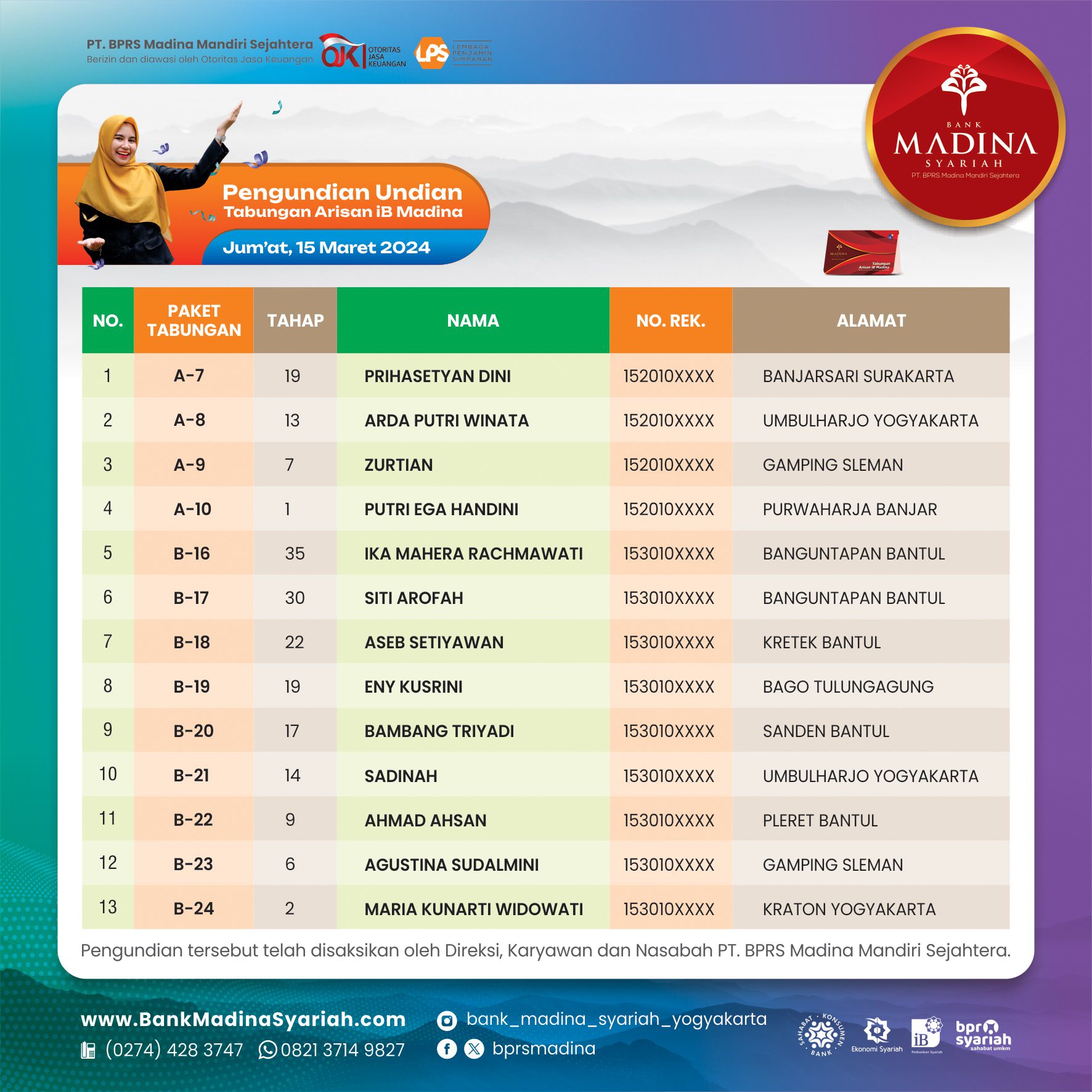 Besar harapan kami Bank Madina Syariah bisa terus sukses dan berkembang menjadi BPRS terdepan dalam membangun ekonomi umat serta selalu bisa hadir menjadi Sahabat dalam Bermu’amalah.